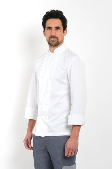 Men'sĀ Grand ChefĀ Jacket. LongĀ sleeves. RoomyĀ sleevesĀ for ease of movement. Hand-rolled crush-resistant buttons. Underarm air vents. Back cutouts....