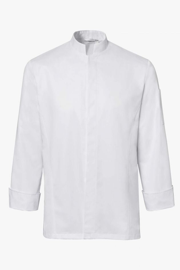The Garden Chef Coat designed with the discerning chef in mind, this coat boasts a Mandarin collar, exuding an air of elegance and professionalism that sets you apart in any kitchen setting. The long sleeves provide both style and practicality, ensuring you stay immaculately presented while maneuvering through the demands of your culinary creations. We understand the importance of comfort in the heat of the kitchen, which is why our coat features strategically placed side and underarm vents. These vents not only facilitate airflow, keeping you cool and composed during intense cooking sessions but also enhance mobility, allowing you to effortlessly execute your culinary masterpieces with precision and grace.