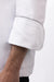 Chef’s Jacket. Long sleeves with cuff. 1 Chest Pocket. Contrasting grey piping. Hand made fabric buttons. White “B” logo embroidered on left cuff. Underarm airvents. Registered design. Cotton twill PIMA PREMIUM 0076.